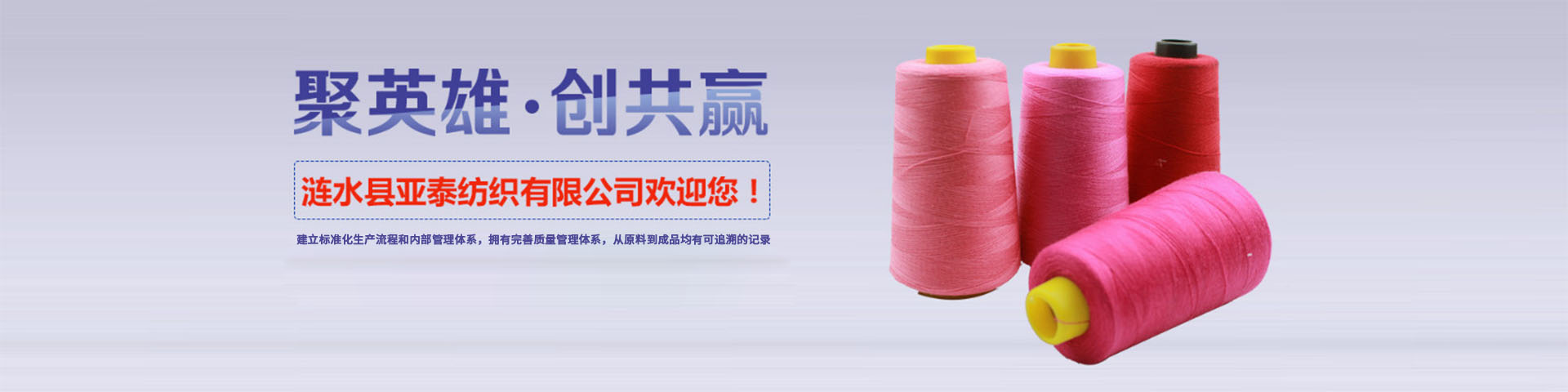 漣水縣亞泰紡織有限公司位于江蘇漣水縣,公司專業(yè)生產各種縫制線、織帶織布線、漁網線、輪胎線、風箏線等產品,廣泛應用于服裝、鞋帽、皮革、箱包、家紡、帳篷、漁業(yè)、勞保用品、運動用品、特種行業(yè),材質有滌綸、錦綸、氨綸等,滿足各行各業(yè)對線的需求。公司始創(chuàng)于1998年,擁有整套先進的染色制線設備,專業(yè)的技術管理人員,先進的生產工藝。歡迎您光臨指導、洽談合作!